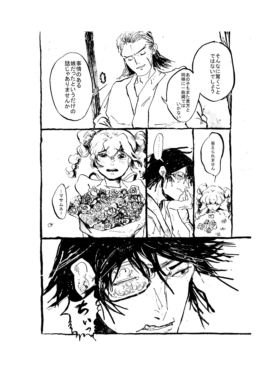 SUKIの数だけ薔薇を束ねて抱きかかえ、盗んだ軍馬でいつきを追うとか…かわされるとか…立ち上がるとか。しつこい奴は情けないですが、めげない奴は心底カッコイイと思っているので我が家の伊達もそういう男になってほしいです。しかし今はスケベが前にでてきてしまっているので、早くマジになるとカッコイイという彼に帰ってきてほしいところ(誰のせいだよ)