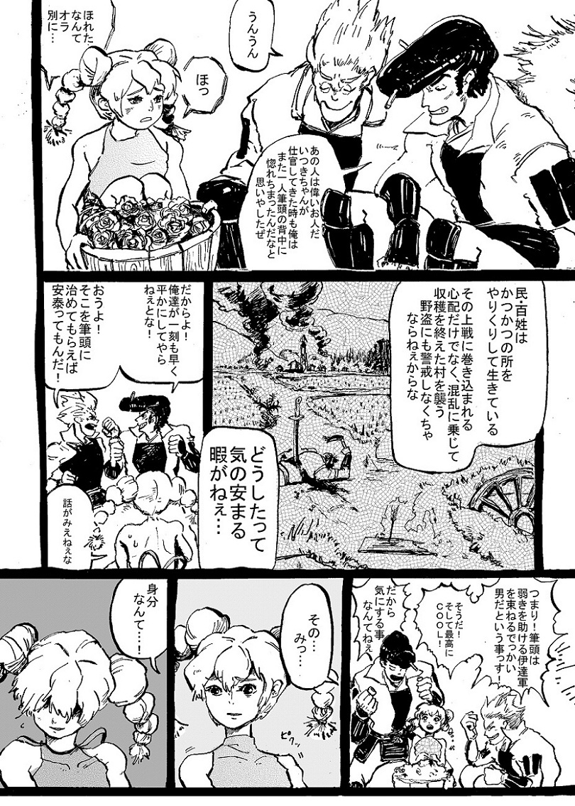ありがとうございます。バサラのキャラクターはみんなハングリーな時代設定なせいかエネルギッシュなイメージがあって面白いので、生命感が「みなぎるぁあ!」な表現をしたいといつも思っています。表情がころころ変るのも描いていて私自身とても面白いので、そういう気持ちが見ている方に少しでも伝われば幸いです。