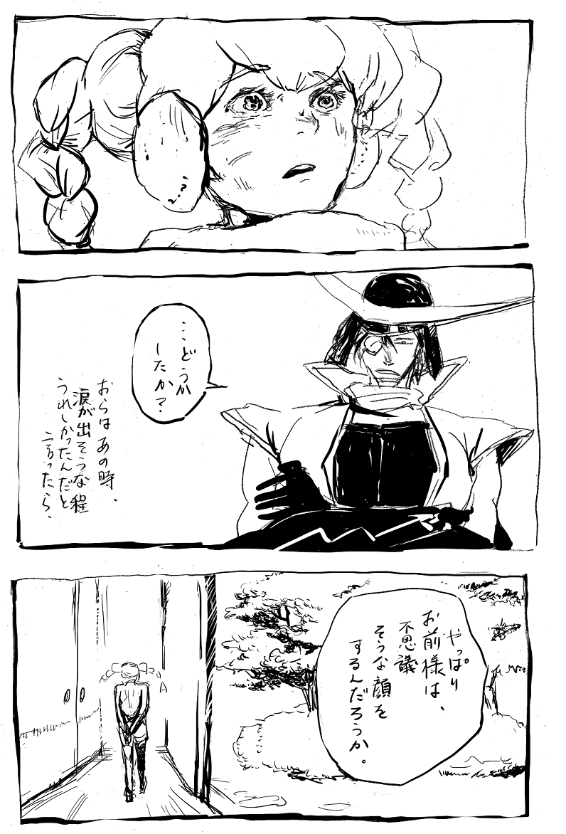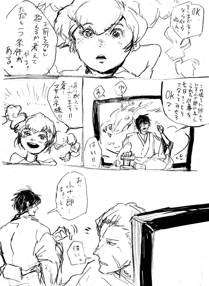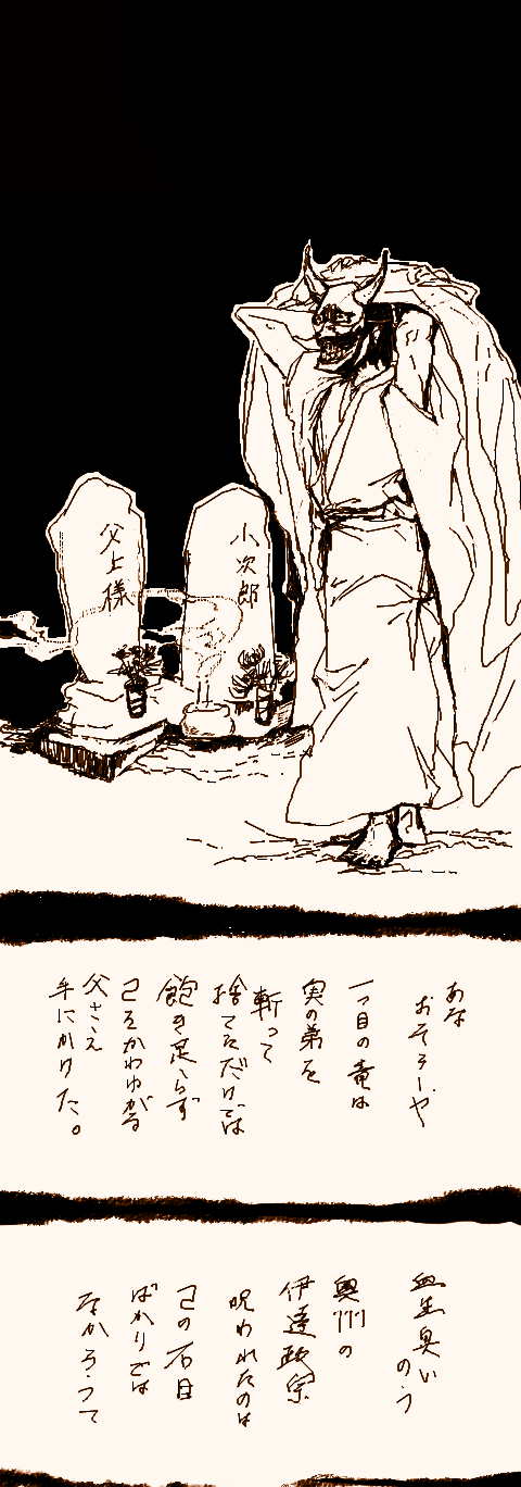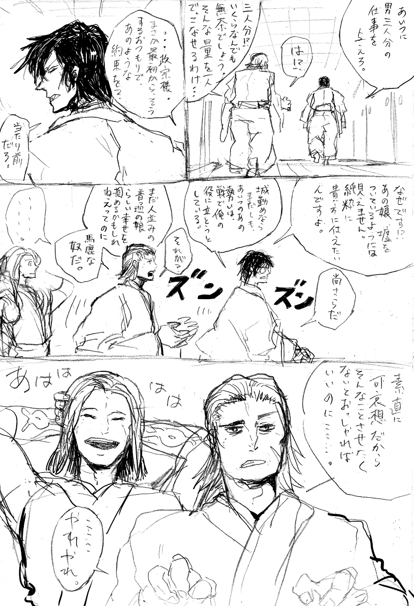 いつきが伊達に仕官した理由のお話です。まさかの伊達いつの超重要台詞を、鉛筆で走り書きでござる。スピードと手軽さをとりました。(てめぇ)A4のノートにごりごり描いた。ごりごり。いつきは伊達に恩返しがしたい。