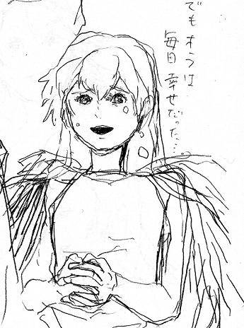 これは描きたかった気がするんだけど、できるだけ簡潔に話を進めたいのでカットされました。まぁ話はだいたいもう残りもわずかだしね。なんとかかんとか。あっ形探ってるからつのが三本もある。やっちゃったなぁ。