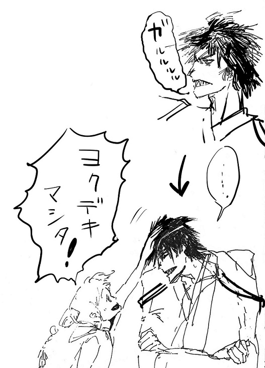 ふむふむある方のイベントに参加され、その方に私がご紹介を…!ほぁあありがたいことです(ほろり)せーさんに紹介してくださった方に大感謝です。どちらのお方かもわかりませんが…!ありがとうございます!(夕日に向かって叫びました)ニコ動もみてくださったんですね。BASARAニコはどうしようもないギャグばかりだったでしょう(笑)連載は今日からスタートなのでおたのしみに~(笑)筆頭が二枚目半!大丈夫です褒め言葉です(笑笑笑)筆頭を書き始めてから顔を崩す喜びを覚えた私です。もういくらでもひどい顔が描けそう←待て
